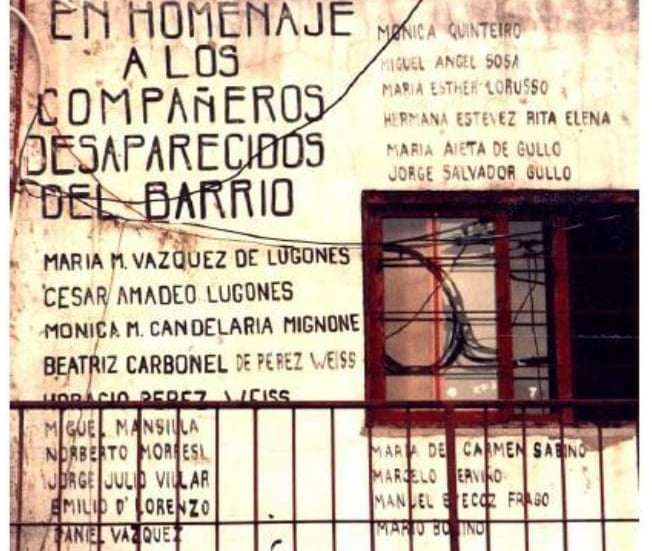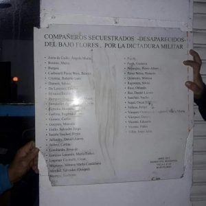 La ausencia se nota, hubo pena pero no olvido. Su legado continúa hoy más vivo que nunca. Mónica Mignone, Maria Esther Lorusso, M. Marta Vásquez y Cesar Lugones, Mónica Quinteiro, Beatriz Carbonell y Horacio Perez Weiss: Militantes detenidos-desaparecidos el 14 de mayo de 1976. "Ahí donde haya una reivindicación de nuestros derechos, un grupo de jóvenes que quiere cambiar la realidad del barrio, una ayuda sincera, un abrazo y tantas otras cosas que hacen especial la vida de nuestras calles y pasillos, ahí mismo ellos están y estarán presentes" (“Micrófonos para el pueblo. FM Bajo Flores”)