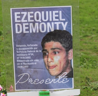 La historia de Ezequiel Demonty es la historia de muchos pibes y pibas del Bajo Flores. Es la historia de muchos jóvenes de villas y barrios populares que no volvieron nunca más a sus casas por culpa de la Policía (Gendarmería, Prefectura, Policía Bonaerense, Policía de la Ciudad). Ezequiel es también un símbolo de lucha contra la impunidad y la violencia institucional y, de algún modo, una prueba de que se puede conseguir justicia aún en tiempos complejos y con la cancha inclinada.