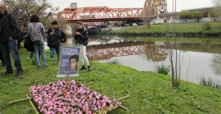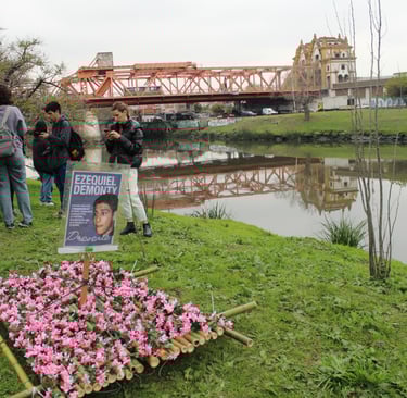 Fotos del Homenaje que cada 21 de septiembre la familia de Ezequiel realiza en la vera del Riachuelo junto a Madres en Lucha, referentes de los derechos humanos y amigos de la familia de Ezequiel.