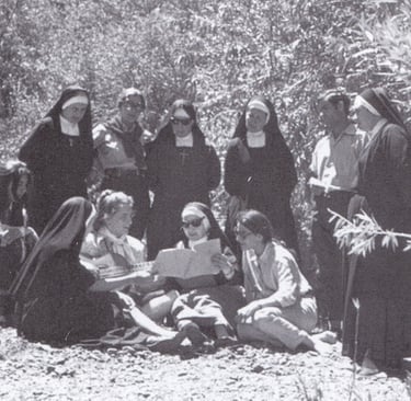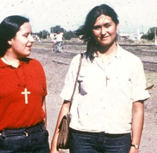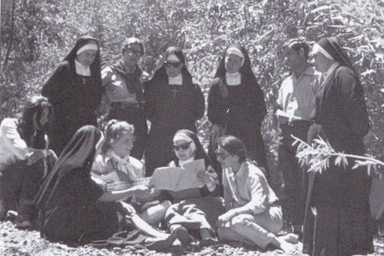 La hermana Graciela es Mónica Quinteiro, está sentada de espaldas. Al lado Mónica Mignone, luego la hermana Colombo y con anteojos está María Marta.