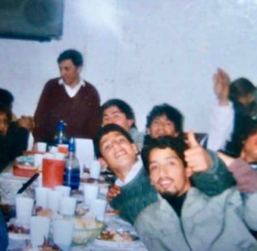 Ezequiel en su adolescencia. Arriba y al costado tres fotos del mismo evento. Siempre junto a amigas y amigos divirtiéndose en lo que pareciera ser una fiesta. Debajo más fotos de Ezequiel en cenas o reuniones con sus amigos. En la mayoría se lo ve sonriente. Gracias Leo Demonty por estas fotos tan emocionantes de Ezequiel, su familia y sus amigos.