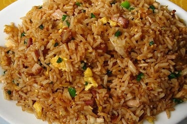 Arroz Chaufa. Uno de los platos más populares en los restaurantes del Bajo Flores. Cortesía de la colectividad peruana. El chaufa puede ser de pollo, carne o mariscos. Se trata de arroz salteado on vegetales, huevo, cebollín, salsa de soja y salsa de ostras. Receta: https://www.youtube.com/watch?v=sFbtifPPQCY