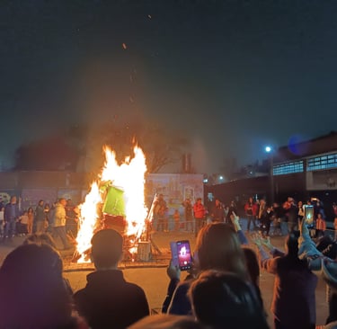 Y así nació esta hermosa tradición que se repite año trás año. Luego de la partida de Patri en la pandemia, su hermano Gonza (en las fotos se lo puede ver) tomó la posta y junto a Lore Fernández, Dani Quiroz, Juan Manuel Mauro, Grisela Galarza, Leo Demonty, instituciones, organizaciones sociales y comunitarias del barrio siguen llevando adelante la tradición en distintas partes del barrio (aunque casi siempre se hace en la EMEN 3). Y año tras año se realizan juegues de kermesse, merienda para niños, toca alguna mugar y se acercan cientos de vecinos para ver las llamas que dejan "todo lo malo atrás".
