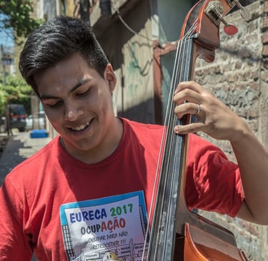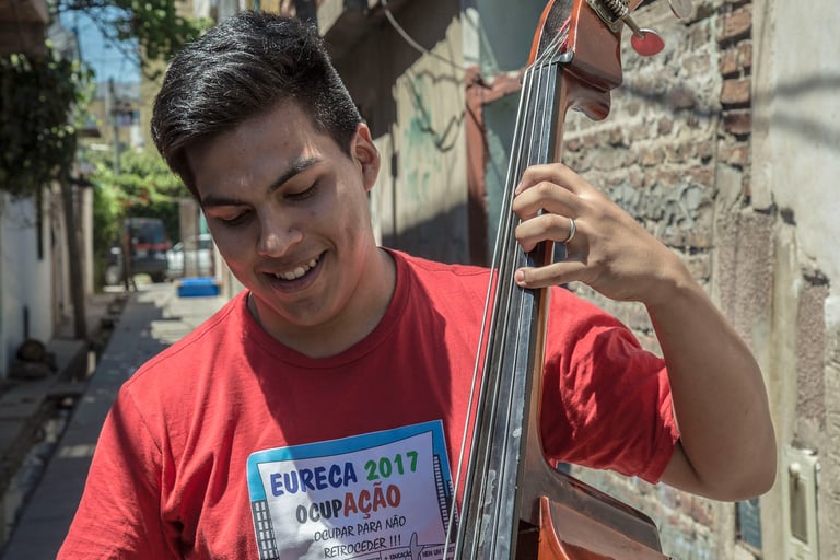 En el barrio, otros prejuicios. Que la música no da de comer, y que el tipo de música que aborda Lucas, es para gente de plata. Su mamá misma, como explica Lucas con la intención de cuidarlo, intentaba desalentarlo, ya que ellos no podrían costear una formación con viajes, instrumentos, etc.