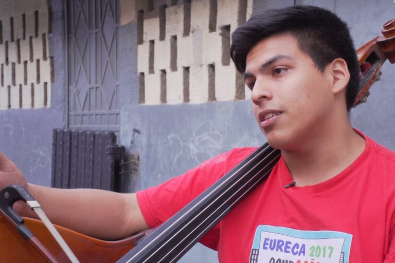 Al principio intentó con la batería, pero tuvo que dejar por la necesidad de trabajar. Por suerte al poco tiempo conoció una orquesta que ensayaba cerca de su casa. No lo pensó y se anotó, empezando a tocar el contrabajo. año y medio de comenzar, como parte del proyecto Orquestas Infantiles y Juveniles del Gobierno de la Ciudad, tuvo la oportunidad de participar de una beca musical en Alemania.