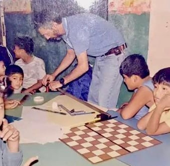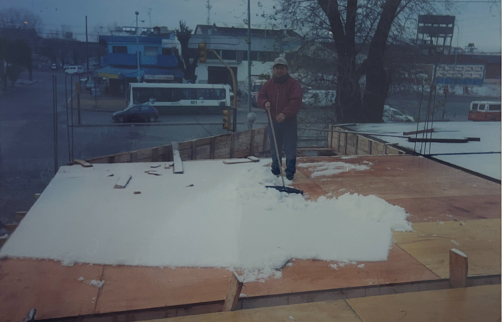 La primera vez que Eugenio visitó la Escuela Emen 3 apenas se veía la estructura de lo que luego sería el edificio. Estaba “el esqueleto”, dice Eugenio. Con el paso de los meses fueron cerrando las partes, crearon cuatro aulas, tres en plata bajo y una en un primer piso y “así empezamos” relata -emocionado- Eugenio Perrone.