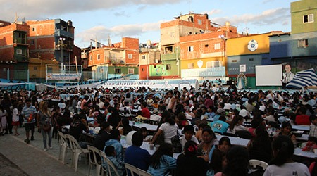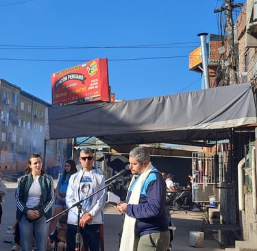 Ni bien asumió la dirección de la Escuela, Eugenio fue a visitar a los curas del barrio. Allí conoció a Ricciardelli y a Narcisi y como él mismo dice “una vez que los conocí, no me despegué más”. Los curas guiaron a Eugenio y le presentaron a los otros actores importantes con trabajo comunitario en el barrio: A Ninoska de Niños Felices por ejemplo y a Aldo (que también había llegado hace poco al Bajo Flores).