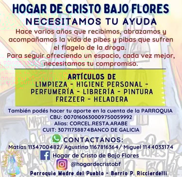 Los que vivimos y atravesamos el Bajo Flores hemos asistido a los cursos de formación en COOPA, recurrimos al Cesac 20 (o algún otro CeSAC) para ser atendidos, participamos de los talleres artísticos del Barrio Rivadavia, asistimos a la Fogata de San Juan organizada por el EMN N°3, tomamos la comunión en Madre del Pueblo con el Padre Gustavo, Pedro o Martín y comimos en alguno de los comedores comunitarios del Bajo Flores y paseamos por la Feria de Bonorino los domingos. Allí se encuentra la esencia de nuestro querido barrio.