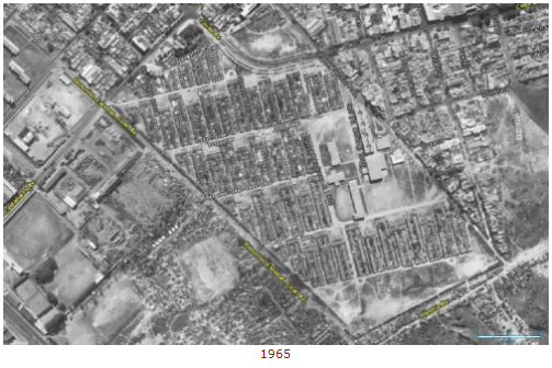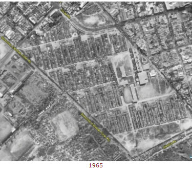 Vista aérea del Bajo Flores en la década de 40´cuando la Avenida Perito Moreno (que se ve claramente en la foto) se llamaba Avenida del Justicialismo. Luego, los militares le cambiaron el nombre.
