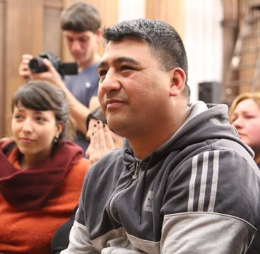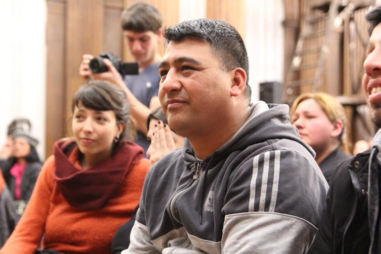 Leonardo Demonty, referente político y de DDHH del barrio, y Ana Mosa (Militante del Bajo Flores) durante la audiencia de cambio de nombre del Barrio Ricciardelli.