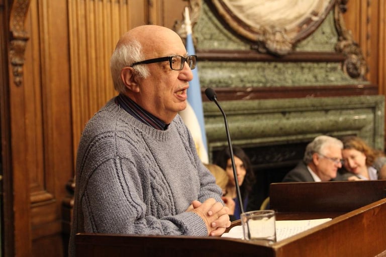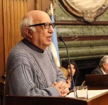 El enorme Domingo Bresci (co fundador del Movimiento de Sacerdotes del Tercer Mundo con Ricciardelli) recordando al Padre Rodolfo en en la audiencia pública en la Legislatura por el cambio de nombre del barrio.