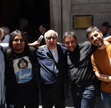 El Padre "Toto" De Vedia, Henry Guanca, Domingo Bresci y Juan Manuel Mauro el día que se aprobó el cambio de nombre en la Legislatura Porteña.