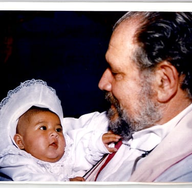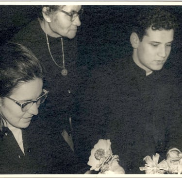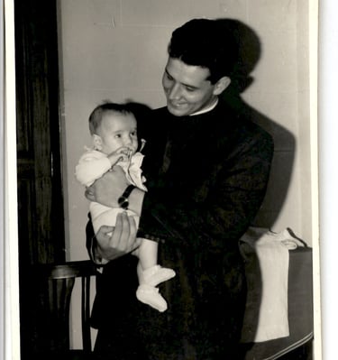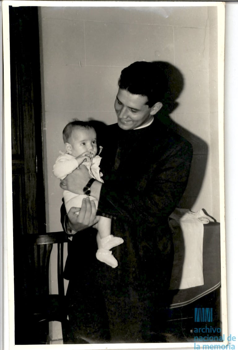 El Padre Rodolfo Ricciardelli de jóven sosteniendo un bebé. Fotografía cedida por el Archivo Nacional de la Memoria.
