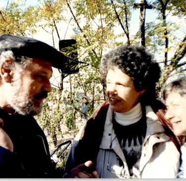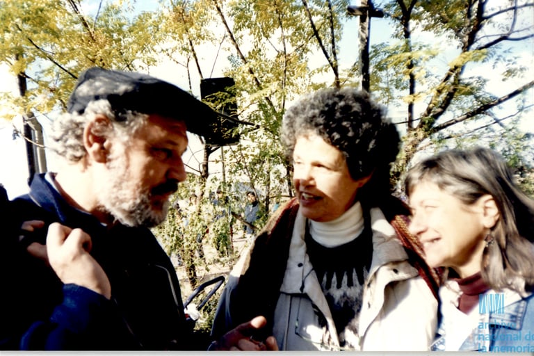 Ricciardeli con boina conversando con vecinas. Foto cedida por el Archivo Nacional de la Memoria.