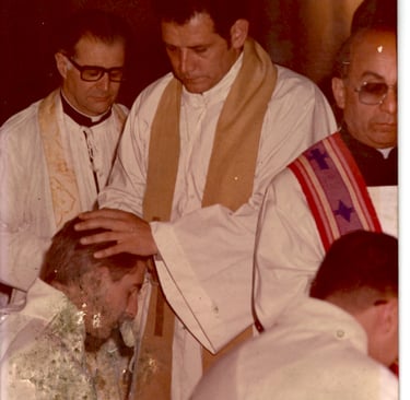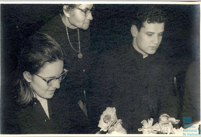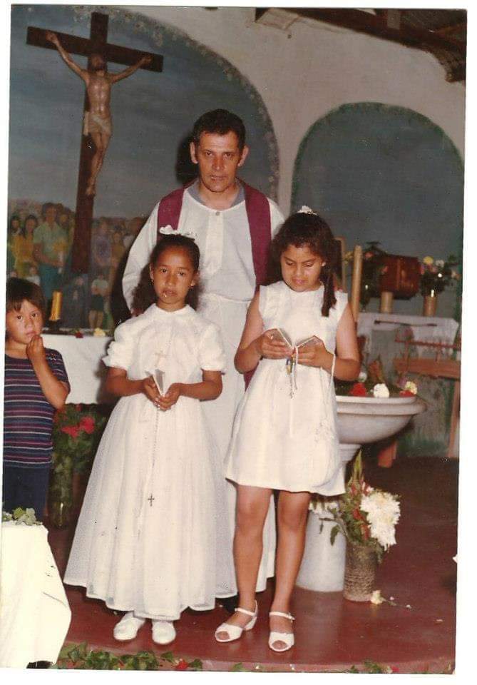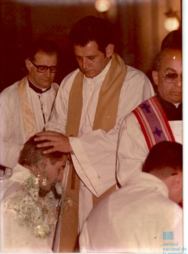 El Padre Rodolfo Ricciardelli en lo que aparenta ser una comunión. Foto cedida por el Archivo Nacional de la Memoria.