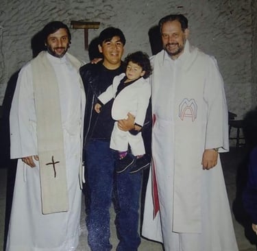 Ricciardelli bautizando a uno de los hijos del "Pichi" Valencia (un vecino histórico del Barrio Rivadavia).