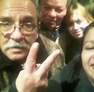Aldo haciendo con sus dedos la "V" del saludo tipico peronista