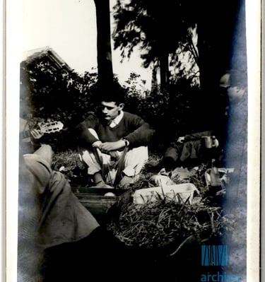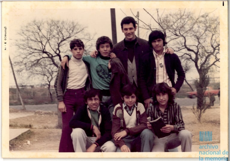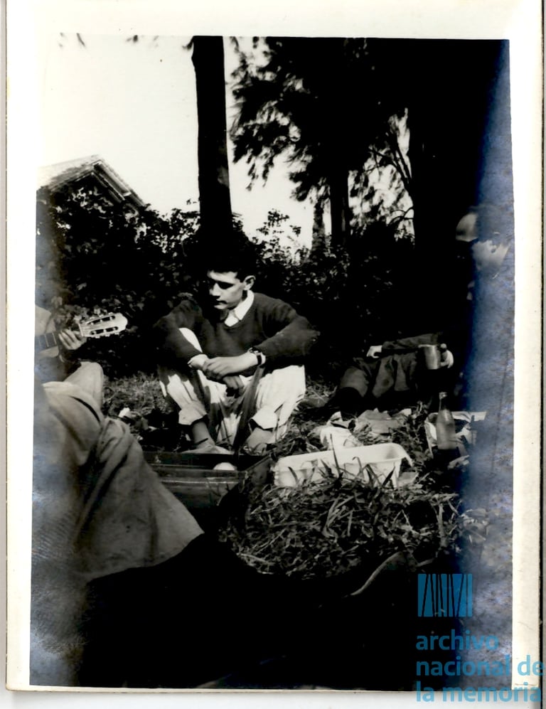 Rodolfo Ricciardelli de jóven en lo que aparenta ser un pic-nic y escuchando el sonido de una guitarra. Fotografía cedida por el Archivo Nacional de la memoria.
