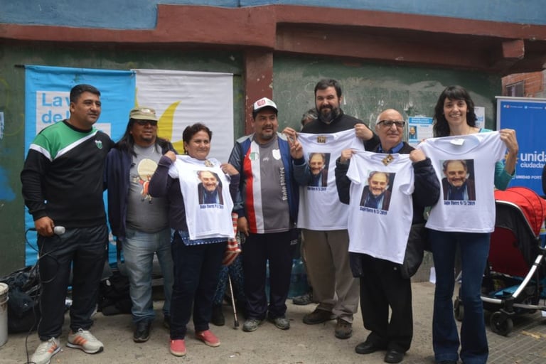 Homenaje a Ricciardelli de vecinos y vecinas del barrio con presencia del Padre Juan Isasmendi, el Padre Domingo Bresci (amigo de toda la vida de Richar) y la Diputada peronista Paula Penacca (autora del cambio de nombre del barrio de 1-11-14 a B Ricciardelli).