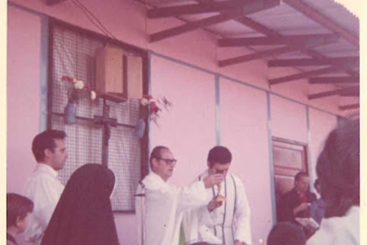 Ernesto Narcisi y Ricciardelli dando misa en Madre del Pueblo.