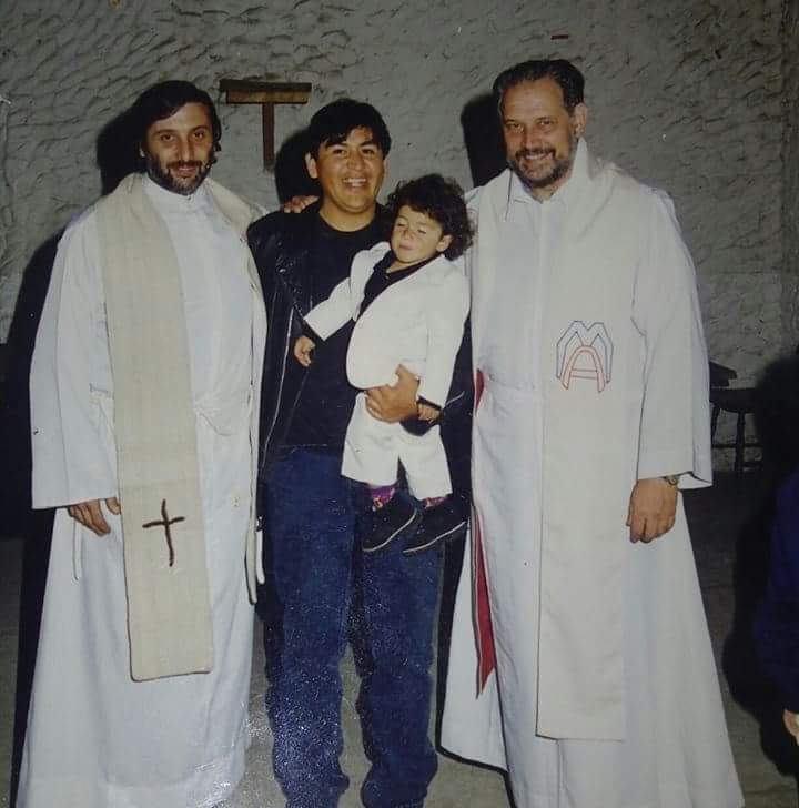 Gustavo Carrara. Hoy Arzobispo de la Ciudad de la Plata estuvo durante años como párroco en Santa María Madre del Pueblo. En esta foto se lo ve en la inconfundible canchita de Madre del Pueblo con Ricciardelli y la Virgen de fondo.